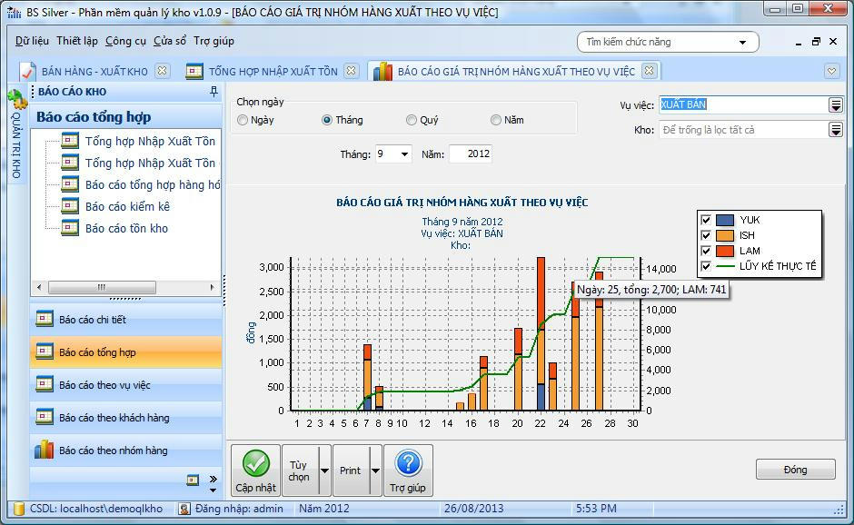 Một số màn hình thao tác và báo cáo trên BS_SILVER xử lý nhiều kho.