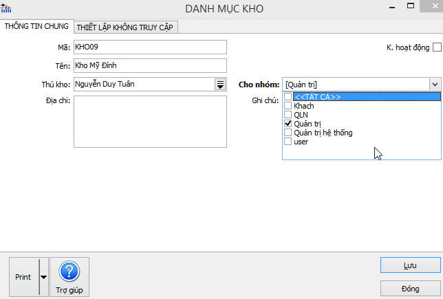 Cho phép tạo nhiều kho và phân quyền cho từng nhóm người dùng được sử dụng kho nào