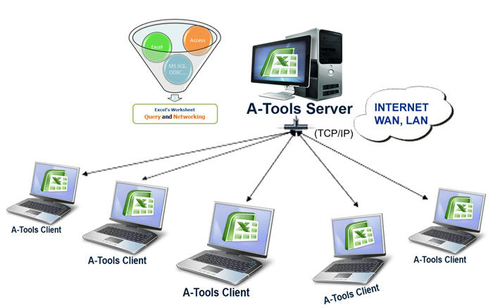 + Ưu điểm: Không phải tạo thêm cột phụ, bảng phụ, sử dụng ít hàm và đặc biệt các hàm đều được tối ưu về dạng text thông qua kỹ thuật của Addin A-Tools nên sẽ tối ưu được dung lượng và tốc độ. Và đặc biệt, khi sử dụng hình thức này thì file excel thể nhiều người dùng chung cùng một lúc thông qua ứng dụng Chia sẻ file Excel qua mạng và phân quyền truy cập của Addin A-Tools theo cơ chế Clients/Servers